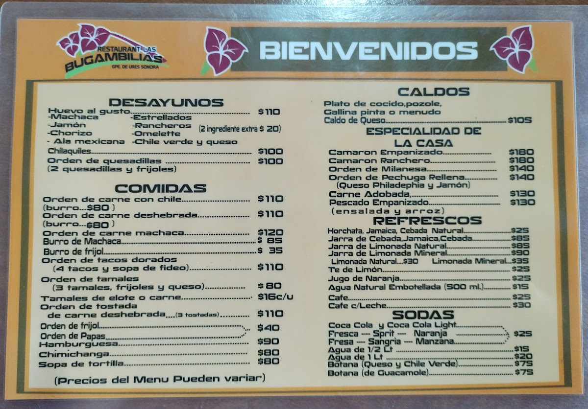 Welcome to Las Bugambilias, a hidden gem located in Moctezuma, Hermosillo, where the heart of Sonoran cuisine comes alive. This eatery delights food lovers with a menu that showcases the rich, vibrant flavors synonymous with the region. Patrons rave about the delicious variety of dishes, from mouth-watering chili beef to freshly made flour tortillas, that embody the essence of authentic Sonoran fare.